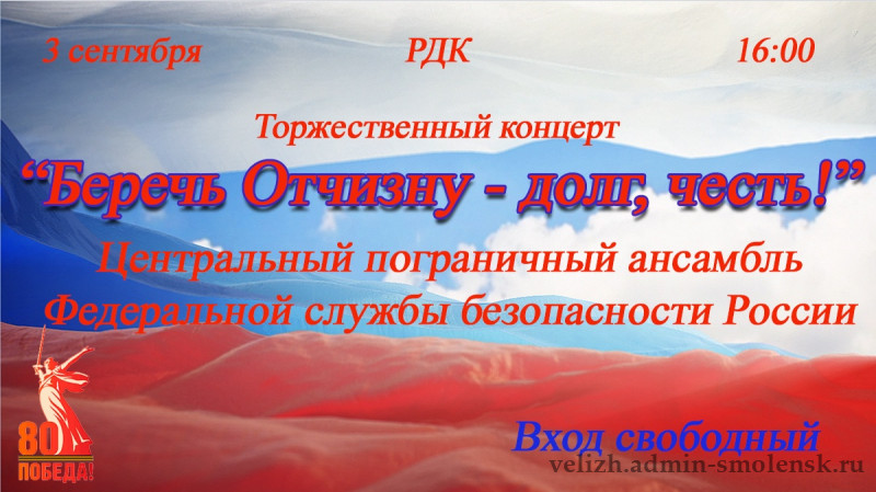 3 сентября в 16.00 РДК Торжественный концерт "Беречь Отчизну-долг, честь!"
