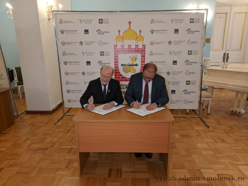Между ректором СмолГУ Михаилом Артеменковым и руководителем Российского православного университета св. Иоанна Богослова Александром Щипковым было подписано соглашение.