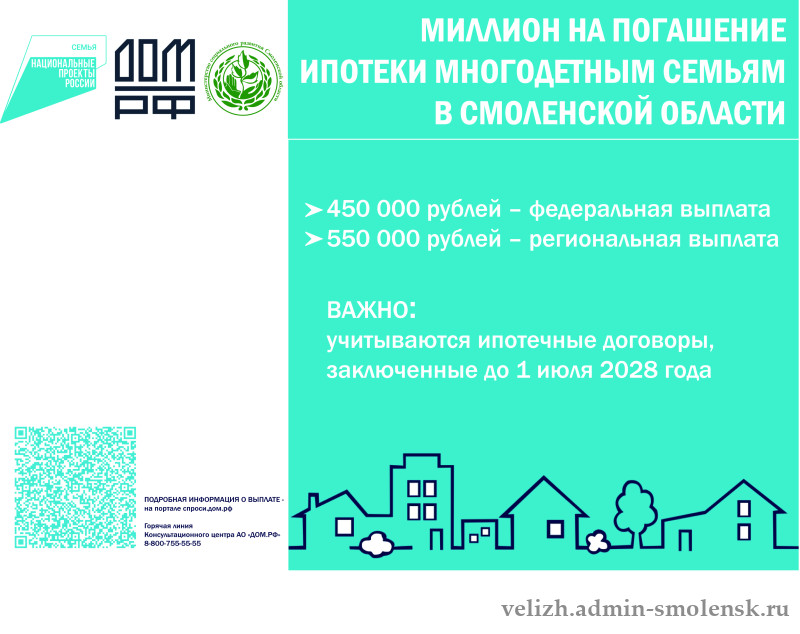 1. В рамках нацпроекта «Семья» на территории Смоленской области предоставляется выплата на полное или частичное погашение обязательств