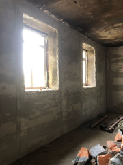 В бане продолжаются работы по внутренней отделке: установлены оконные блоки, в мужском отделении завершено оштукатуривание стен, штукатурные работы ведутся в душевых комнатах.
