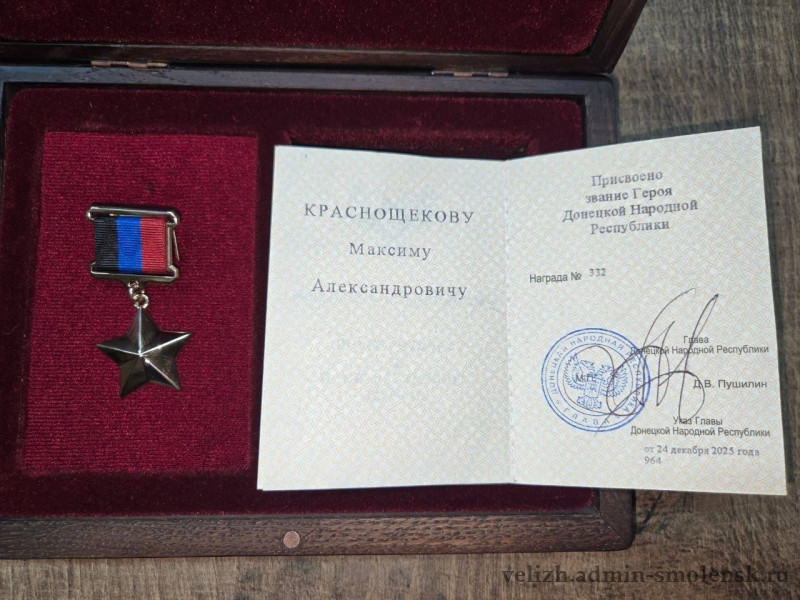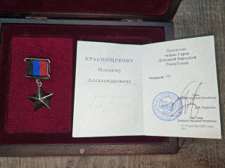 За умелое командование вверенным ему подразделением он получил звание Героя ДНР. Максим Краснощеков уже имеет звание Героя России. Артем Малащенков связался с коллегами из республики, они уточнили, что высокая награда получена за грамотные действия во время Красноармейской наступательной операции.