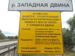 Производят ремонтные работы ООО «НПП СК МОСТ». Заказчиком выступает Смоленское областное государственное учреждение «Смоленскавтодор».