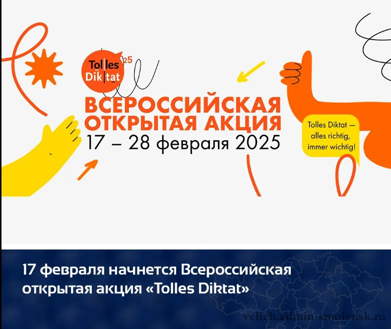 С 17 по 28 февраля 2025 года пройдет Всероссийская открытая акция «Tolles Diktat». Принять участие в акции может бесплатно любой желающий.
