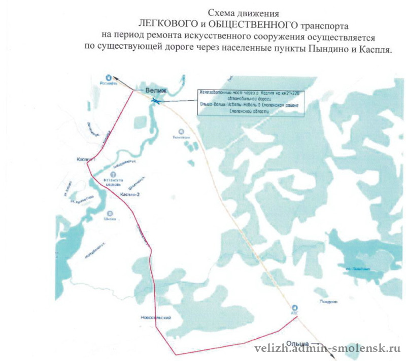 Легковые автомобили и общественный транспорт будут следовать по объездному маршруту через населенные пункты Пындино и Каспля. Обращайте внимание на установленные дорожные знаки и информационные щиты.