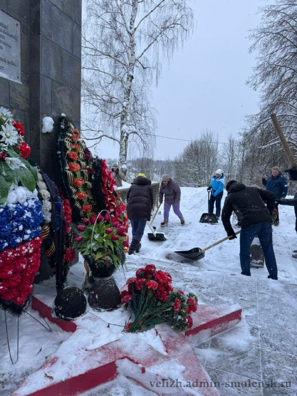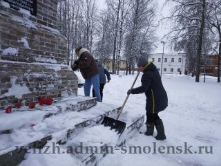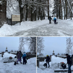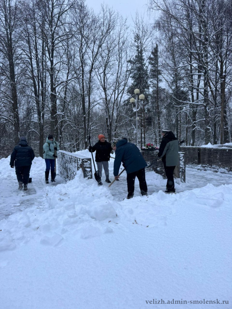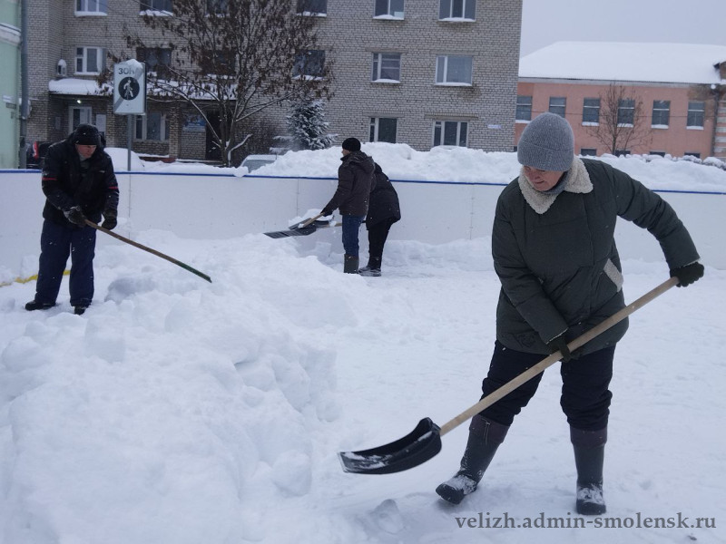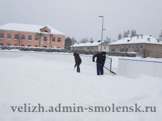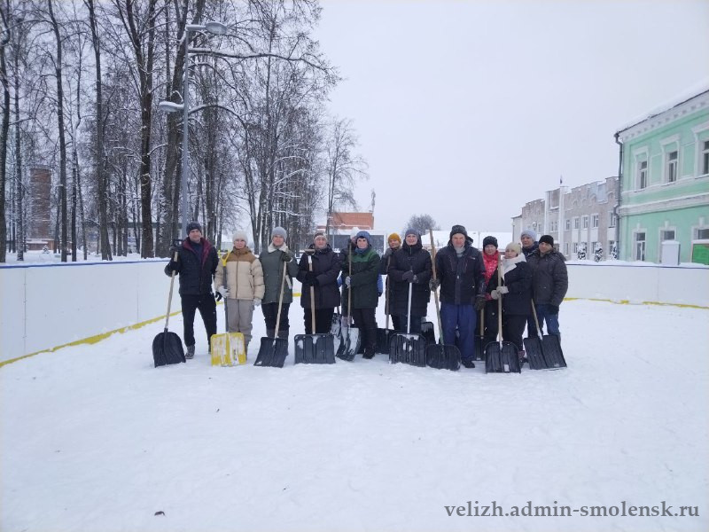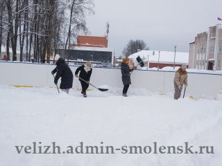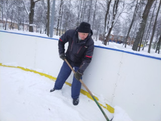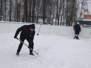 Вчера сотрудники администрации округа, работники районного ДК работали на очистке катка, центрального парка, мемориала «Лидова гора».