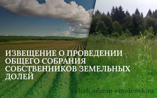 Администрация муниципального образования «Велижский муниципальный округ» Смоленской области информирует о созыве общего собрания собственников земельных долей.