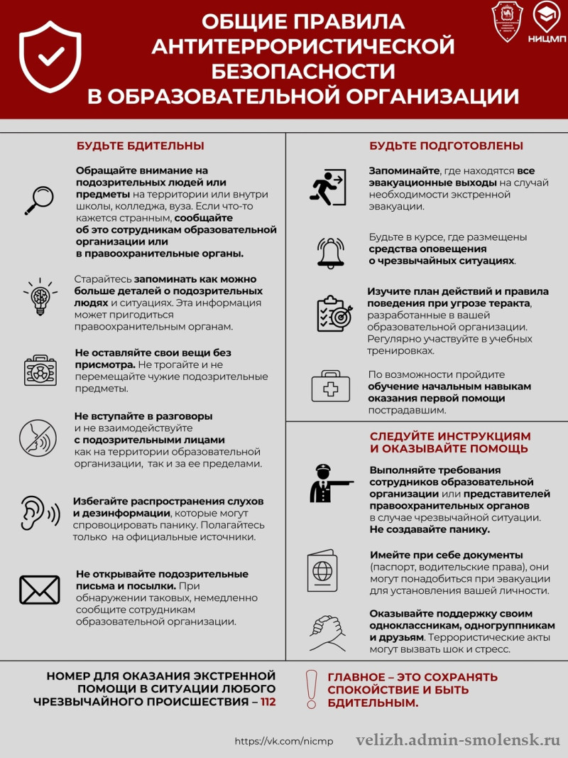 • Памятка по мерам антитеррористической безопасности. Информация в карточках