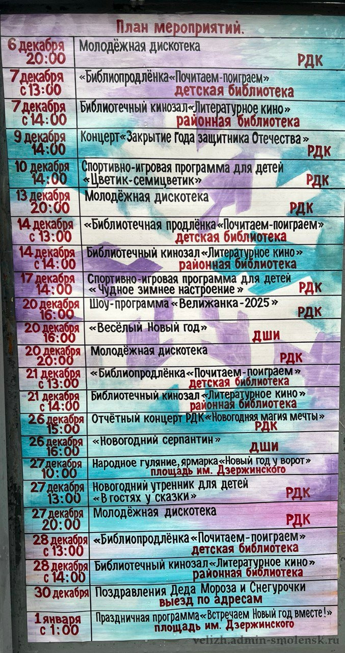 20 декабря, 16:00 — Шоу-программа «Велижанка-2025» (РДК);