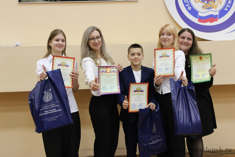 Ежегодно жюри просматривает сотни работ. С каждым годом их уровень только растет. Победить очень сложно, поэтому вдвойне ценны такие таланты и такие открытия, как в этом году. Алена Карпеченко, учащаяся «Лицея №1 им. академика Б.Н.Петрова», третий раз доказала свое право называться лучшей из лучших в номинации «О налогах в красках». О том, почему во все времена налоги были и остаются очень важными для государства, в своем видеоролике рассказала победитель номинации «Видео о налогах», учащаяся средней школы №1 г.Велижа София Лесовая. В номинации «Уроки о налогах» абсолютная победа у куратора двух призеров конкурса Лилии Лялиной и Константина Власова, учителя математики МБОУ «СШ №19 им. Героя России Панова» - Юлии Борисовой.