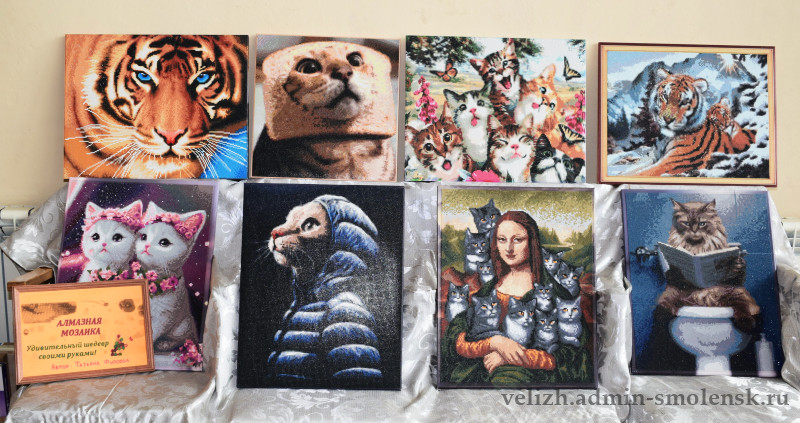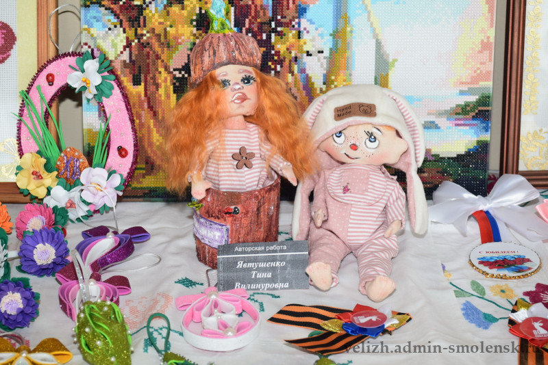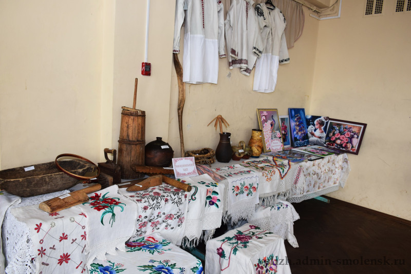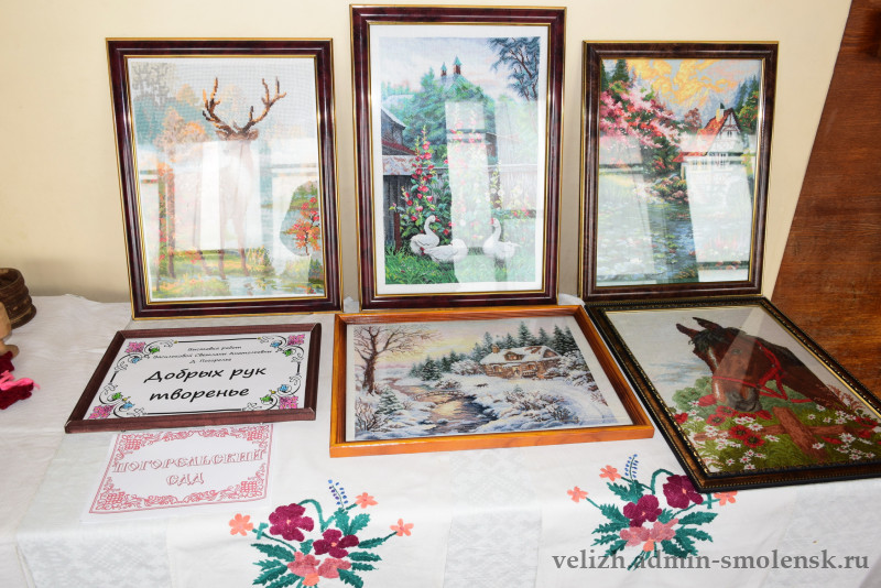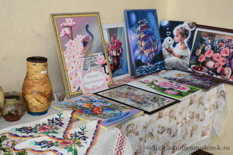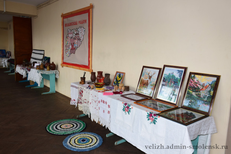На втором этаже была организована выставка велижской старины — предметы быта, старинные вышивки и многое другое. Также гости могли насладиться выставкой работ мастеров декоративно-прикладного искусства района.