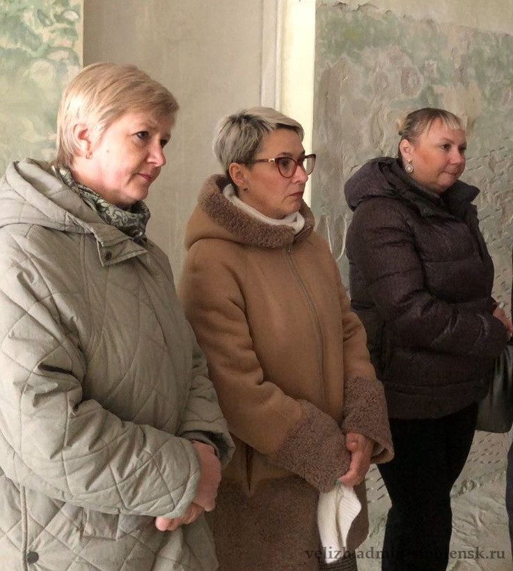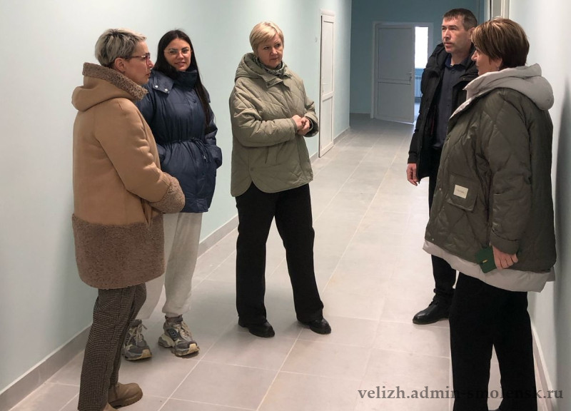 Глава Велижского округа Г А. Валикова совместно с заместителем министра архитектуры и строительства Е.В. Кардаш, представителем УКСа В.М. Анисимовым и своим заместителем О.А. Богатыревой провели инспекцию ремонта Велижской центральной районной больницы (ЦРБ) и городской бани.