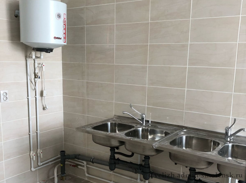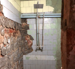 Городская баня: в мужском отделении закончены демонтажные работы, проведены подготовительные работы на полу и начато оформление стен под плитку. Также ведутся работы в душевых и ванных комнатах.