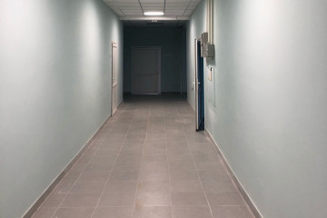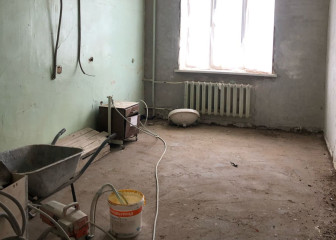 Детское отделение: Ремонтные работы находятся на завершающей стадии. Выполнена отделка пола стяжкой, начат процесс укладки плитки.