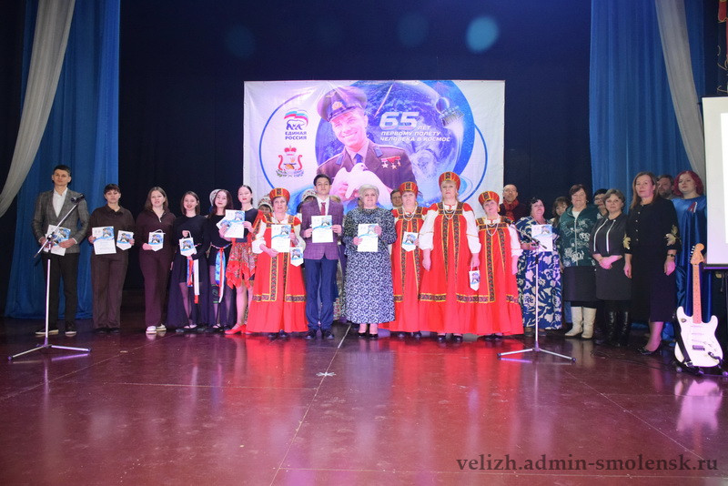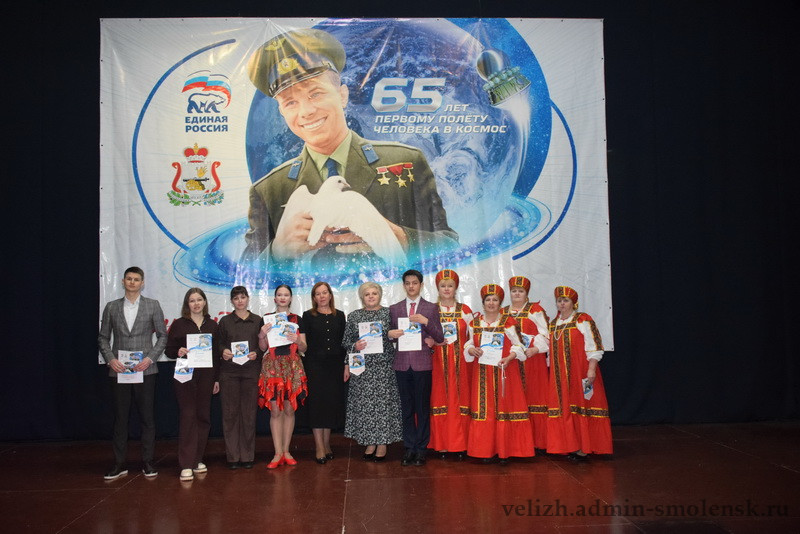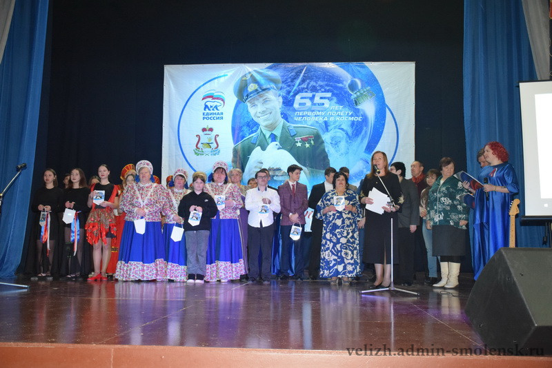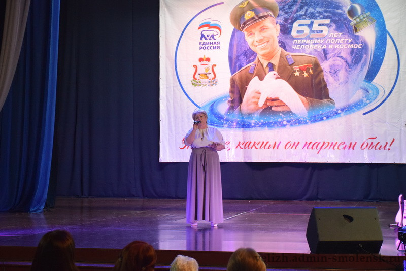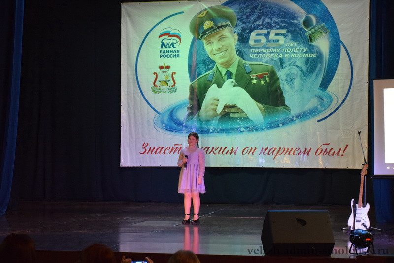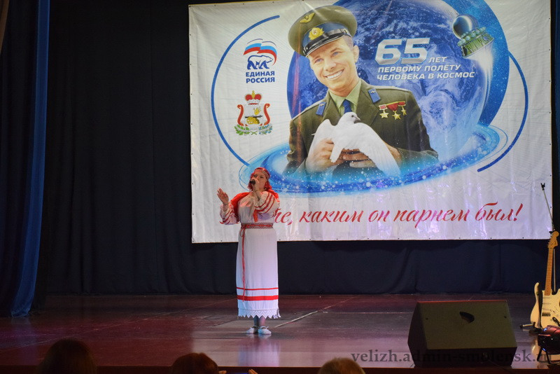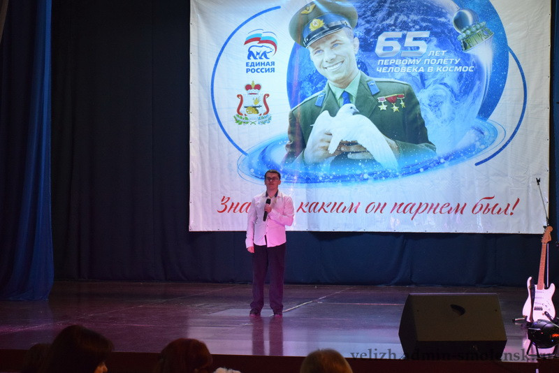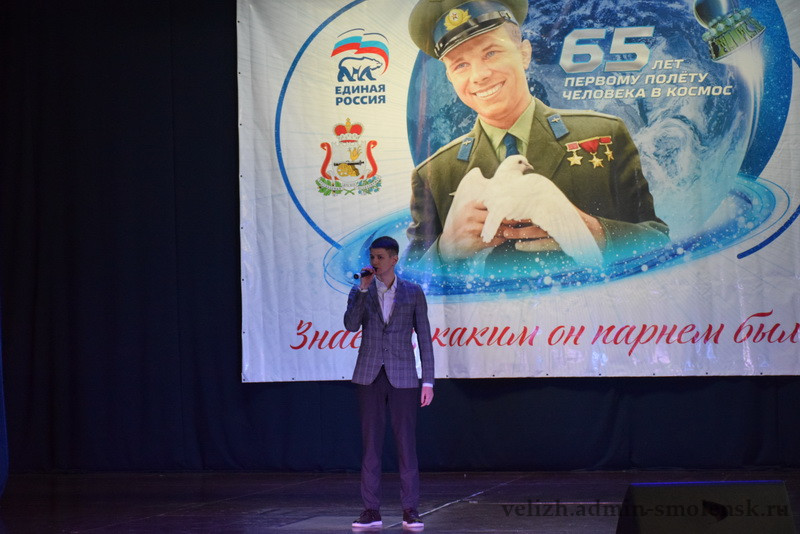 18 февраля на сцене Велижского районного Дома культуры прошел муниципальный этап областного конкурса «Знаете, каким он парнем был!», посвященный 65-летию первого космического полета летчика-космонавта Юрия Алексеевича Гагарина.