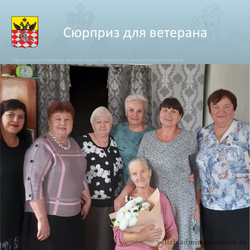 Настоящий сюрприз для ветерана труда Надежды Гавриловны Москалевой из деревни Селезни устроили Согбу Велижский-Кцсон, Совет ветеранов и бывшие коллеги.
