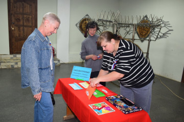Холл Дома культуры превратился в настоящую зону отдыха и развлечений! Здесь каждый мог почувствовать себя частью большого русского праздника: повязать праздничный триколор, поучаствовать в библиотечных квестах и турнирах, создать своими руками символы великой России и весело провести время.