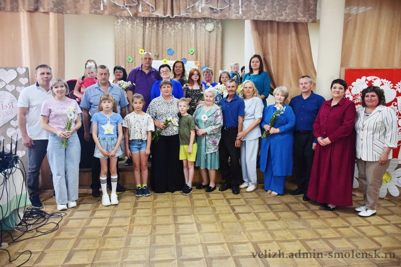 В музыкальной гостиной ДК собрались семьи-юбиляры, жители города и почетные гости — Председатель Велижского окружного Совета депутатов Людмила Осипова и начальник отдела ЗАГС Снежана Клименкова. Они пожелали семьям счастья, вручили приятные подарки и поблагодарили за сохранение семейных традиций.