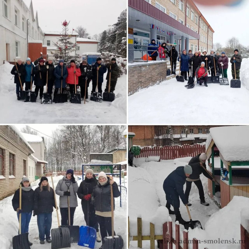 Общими усилиями были расчищены подходы к социально значимым объектам, тротуары и пешеходные дорожки.