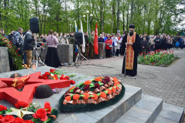 Поздравительные речи, душевные выступления родственников погибших, литературно-музыкальная композиция, лития по погибшим, минута молчания в память о невернувшихся героях войны, возложение цветов. Все как обычно и в тоже время особенно трогательно и торжественно.