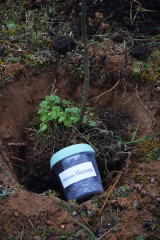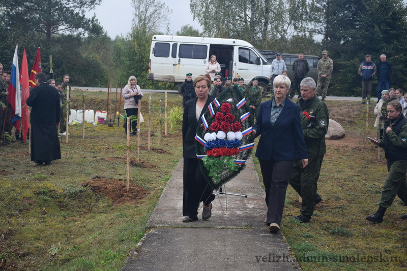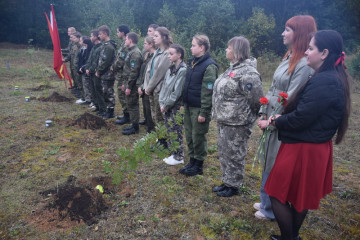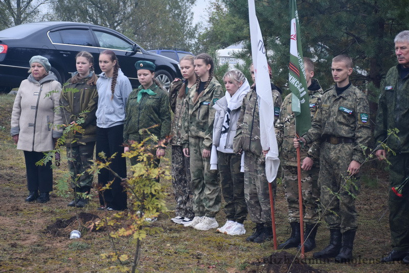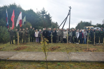 В память о погибших деревнях и их жителях участники акции высадили рябины. Под каждое дерево активисты «Движения первых» высыпали землю, собранную с мест сожженных деревень.