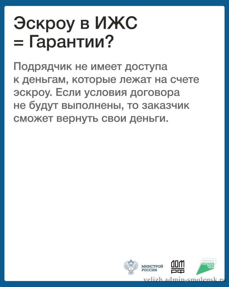 Теперь при заключении договора строительного подряда на возведение частного дома обязательным условием становится открытие специального банковского счёта — эскроу. Это значит, что деньги, внесённые вами на покупку материалов или оплату работ, будут храниться на специальном счету до полного окончания строительства и ввода вашего дома в эксплуатацию. Зачем это нужно?Это нововведение защищает ваши финансы и гарантирует безопасность сделки.