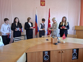 Ребята приняли поздравления и свой первый документ из рук Главы округа. На память каждому участнику церемонии подарены обложки на паспорт и Конституция России.